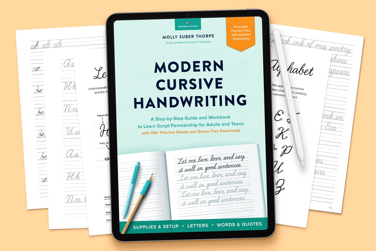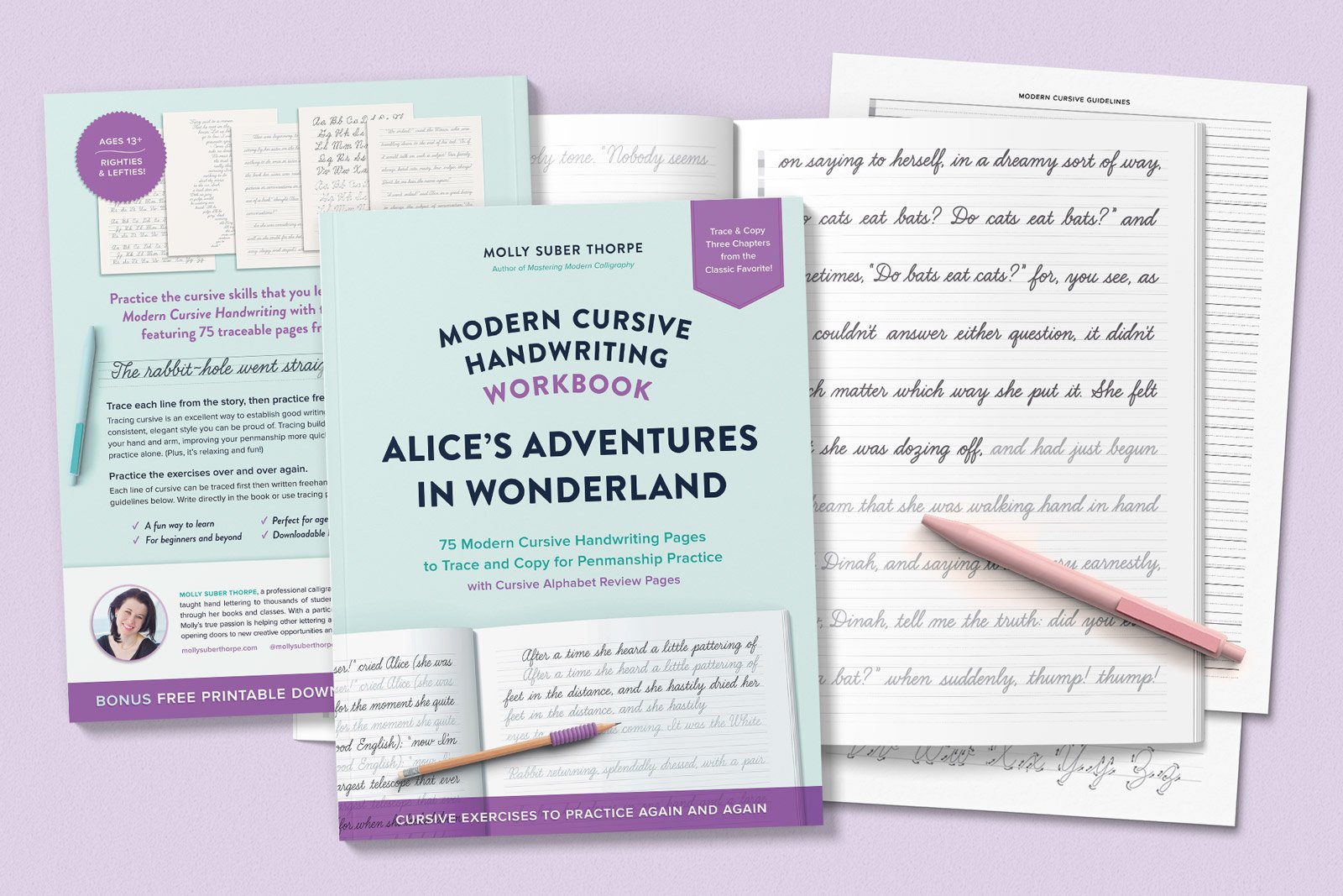 With 200+ pages of exercises, you’ll work your way through the cursive alphabet one stroke and letter at a time. Then you’ll move on to letter connections, common words, and phrases. The book includes warmup drills, pen grip guidance, and instructions for both righties and lefties.